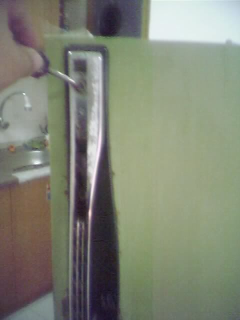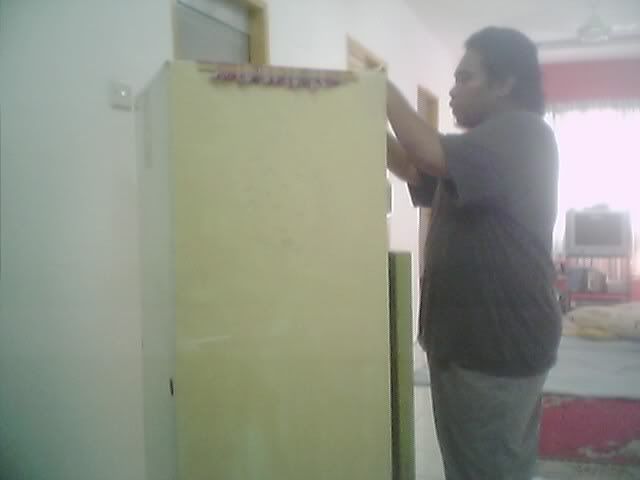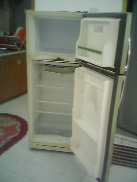 Last week during my day off, went to Selayang to check out the second hand fridge shop that arafat was telling about.Hmm not much to choose from.. i was aiming for 2 door fridge.Finally saw one Green avocado 2 doors Sharp fridge.So check it out the condition of the fridge.Looks like the internal and the functional part was in superb condition and the cooling part was definitely cooooooll :) But then the outer part such as the door fridge kinda a bit rusty.Managed to get it for 200 bucks kinda cheap i guess.I was telling myself.. about the rusty door... naaa i can fix this up.Gonna paint it back with Epoxy Enamel coating and gonna plan to paint it black.. yeahhhh..