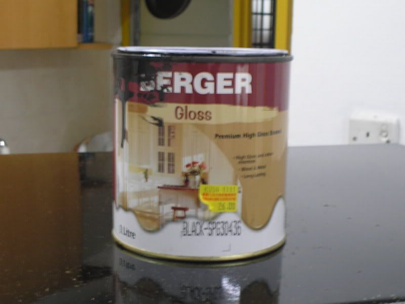 - 1 litre Enamel based paint ( I choose Berger Gloss paint) you can find at any Hardware store cost around Rm 26